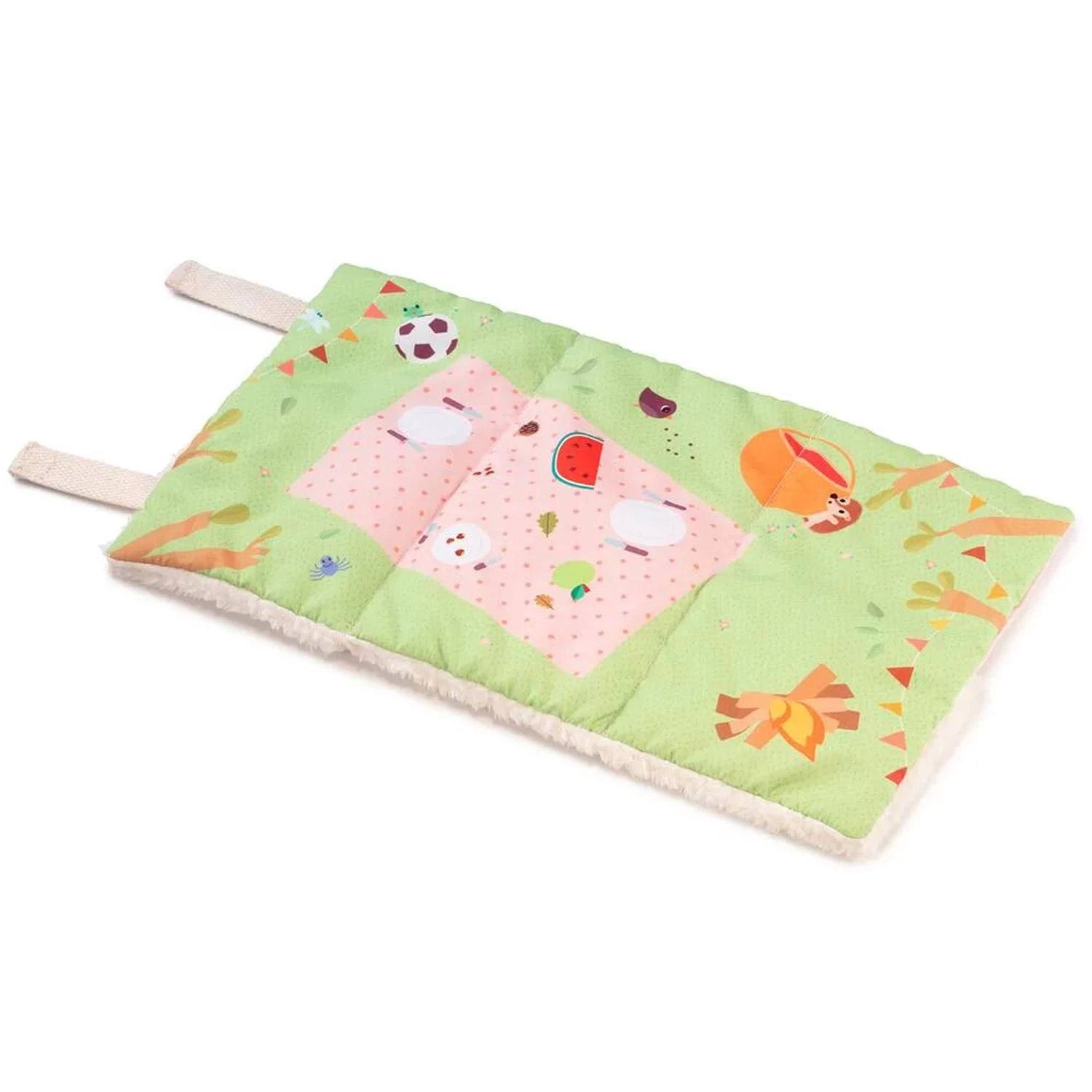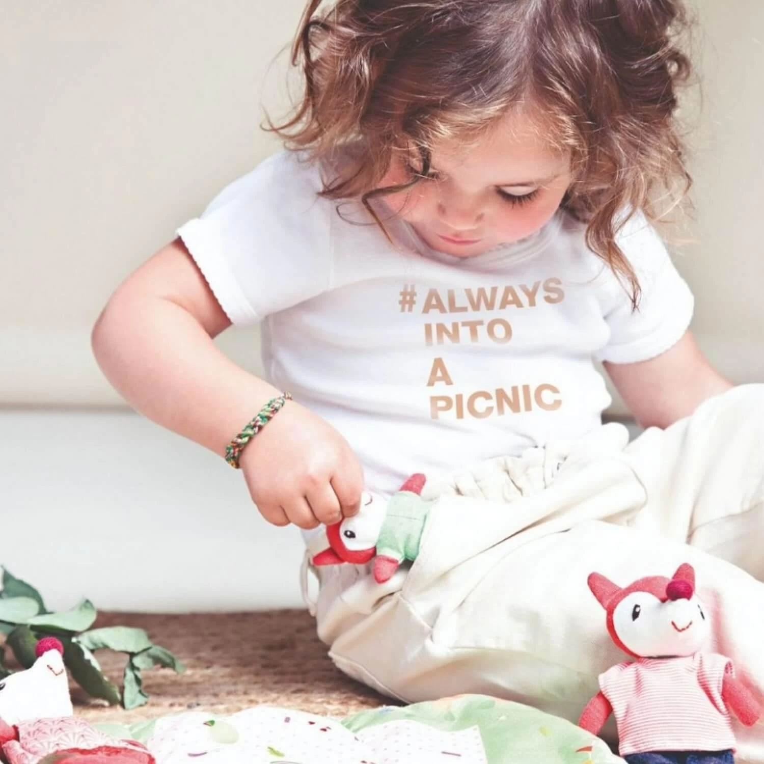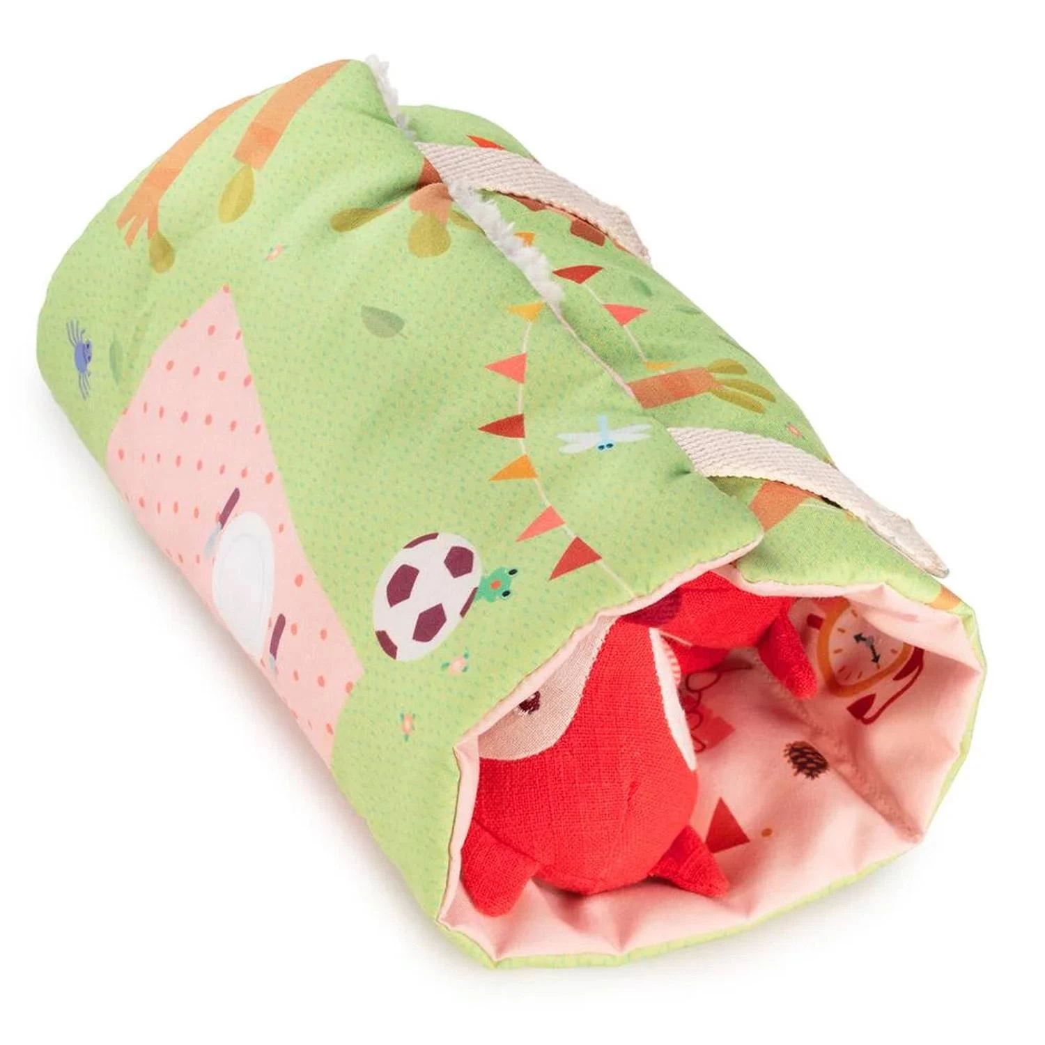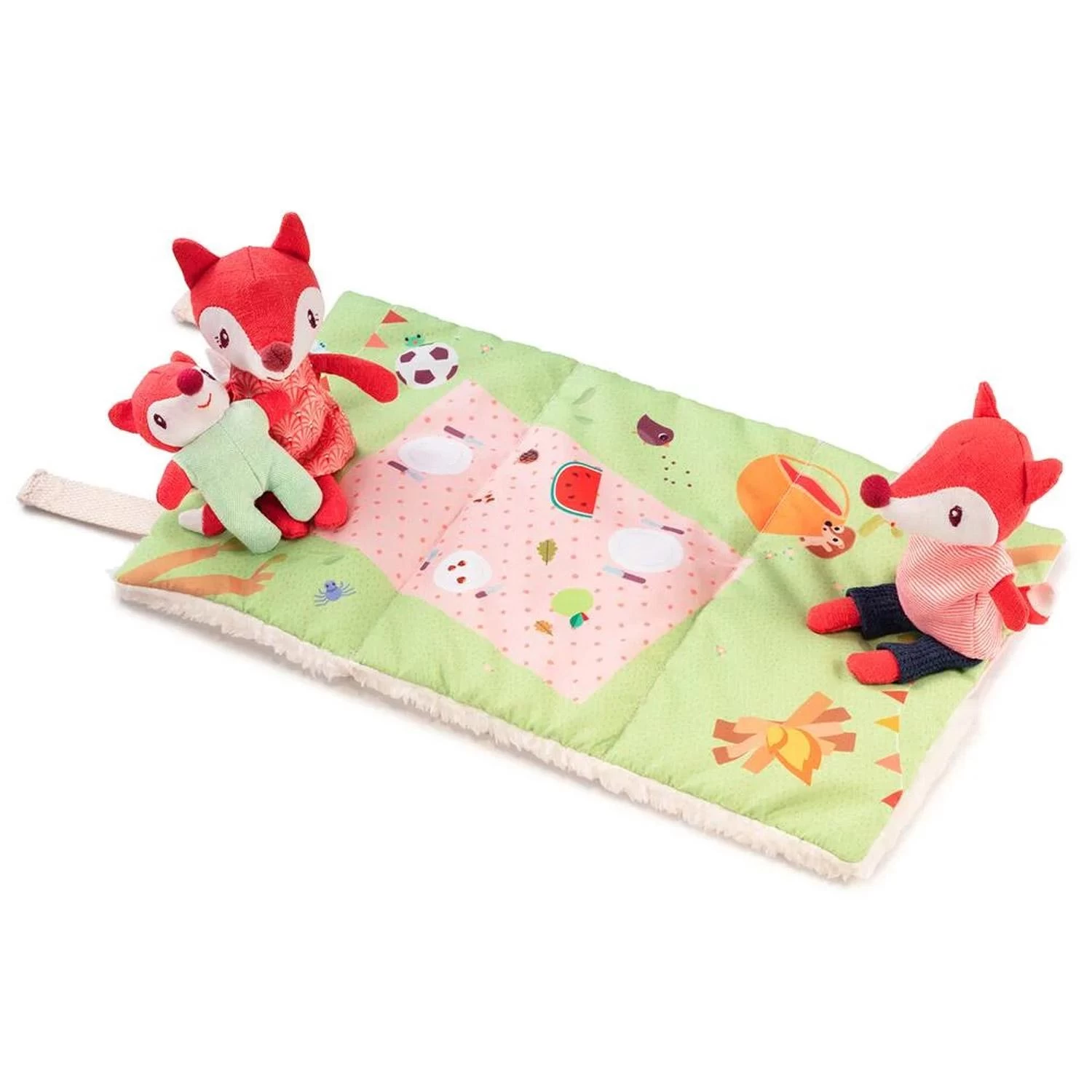 Le petit tapis a deux cĂŽtĂ©s pour deux utilitĂ©s diffĂ©rentes : il y a le cĂŽtĂ© pique-nique et le cĂŽtĂ© lit tout doux. L’enfant peut alors se dĂ©cider s’il souhaite que la famille d’Alice la Renarde passe de bons moments autour d’un pique-nique ou s’il souhaite qu’ils fassent une sieste. S’allonger sur l’herbe et regarder le ciel pendant que bĂ©bĂ© renard joue, les emmener en balade… Les possibilitĂ©s d’histoires sont grandes. Les habits de chaque membre de la famille s’enlĂšvent ce qui donne un peu plus de rĂ©alisme lorsqu’ils sont mis au lit.