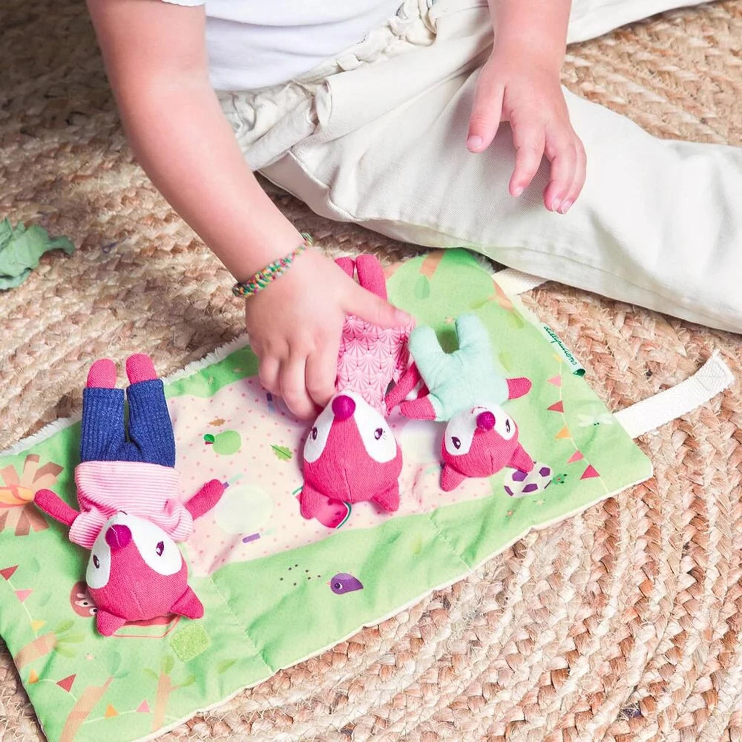 Avec ce set de Mini personnages : La Famille d’Alice la Renarde avec leur tapis recto-verso de Lilliputiens, votre enfant va adorer inventer des histoires !