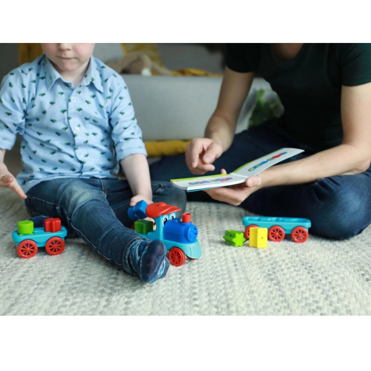 Votre cerveau est-il en forme ? Entraînez votre cerveau avec ce jeu de forme ! Ce train est à la fois un puzzle et un jouet. Pouvez-vous placer les formes dans le bon ordre dans les wagons ? Au fur et à mesure que les défis deviennent plus difficiles, vous aurez de moins en moins d’indices. Êtes-vous sur la bonne voie ? Assurez-vous que tous les wagons sont raccordés avant que votre train ne quitte la gare.