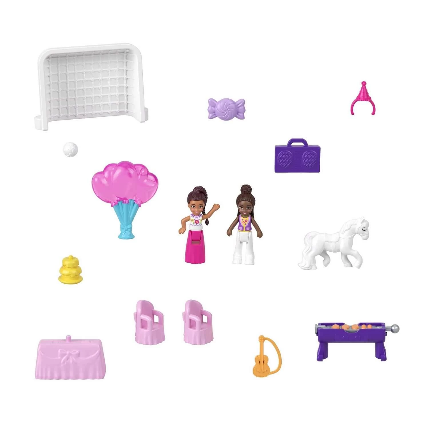 Préparez le gâteau dans la cuisine, jouez au football sur le terrain avec vos amis, ou bien ouvrez la piñata pour libérer une pluie de sucreries. Et pour encore plus de possibilités de jeu, collectionnez tous les coffrets de l’univers Polly Pocket !