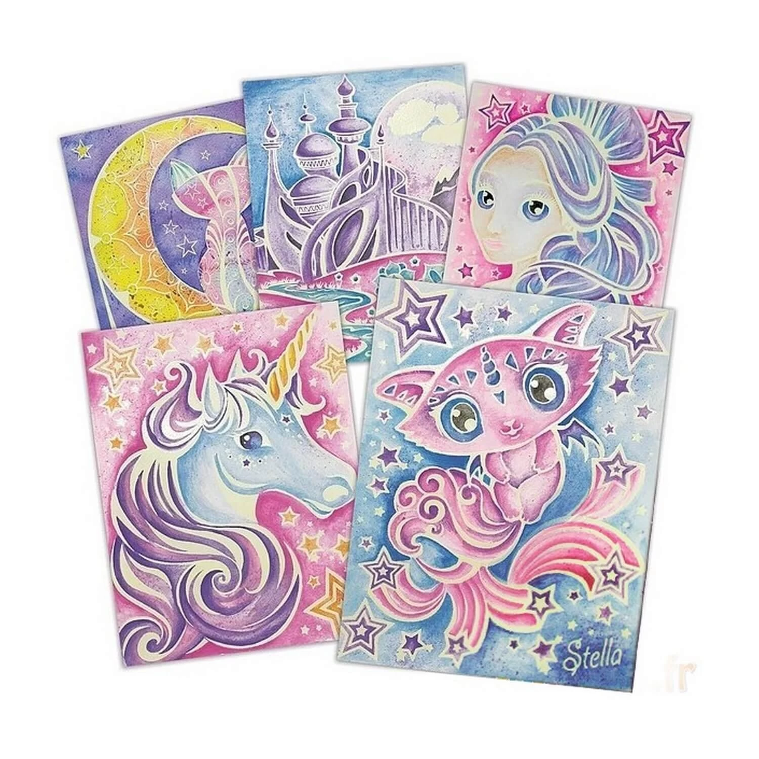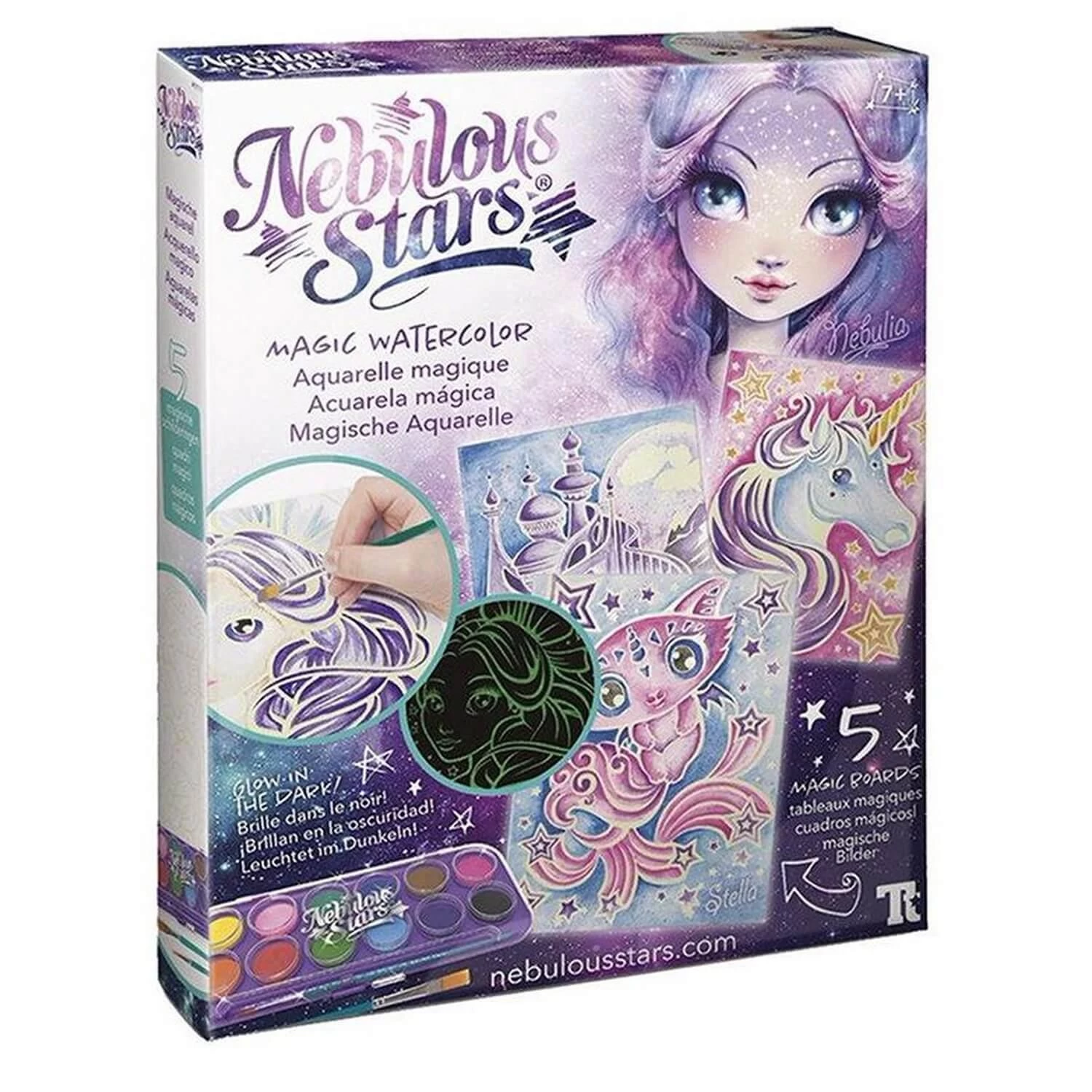 Avec ce trĂšs beau coffret crĂ©atif, votre enfant pourra peindre 5 magnifiques tableaux en aquarelle phosphorescente.Â