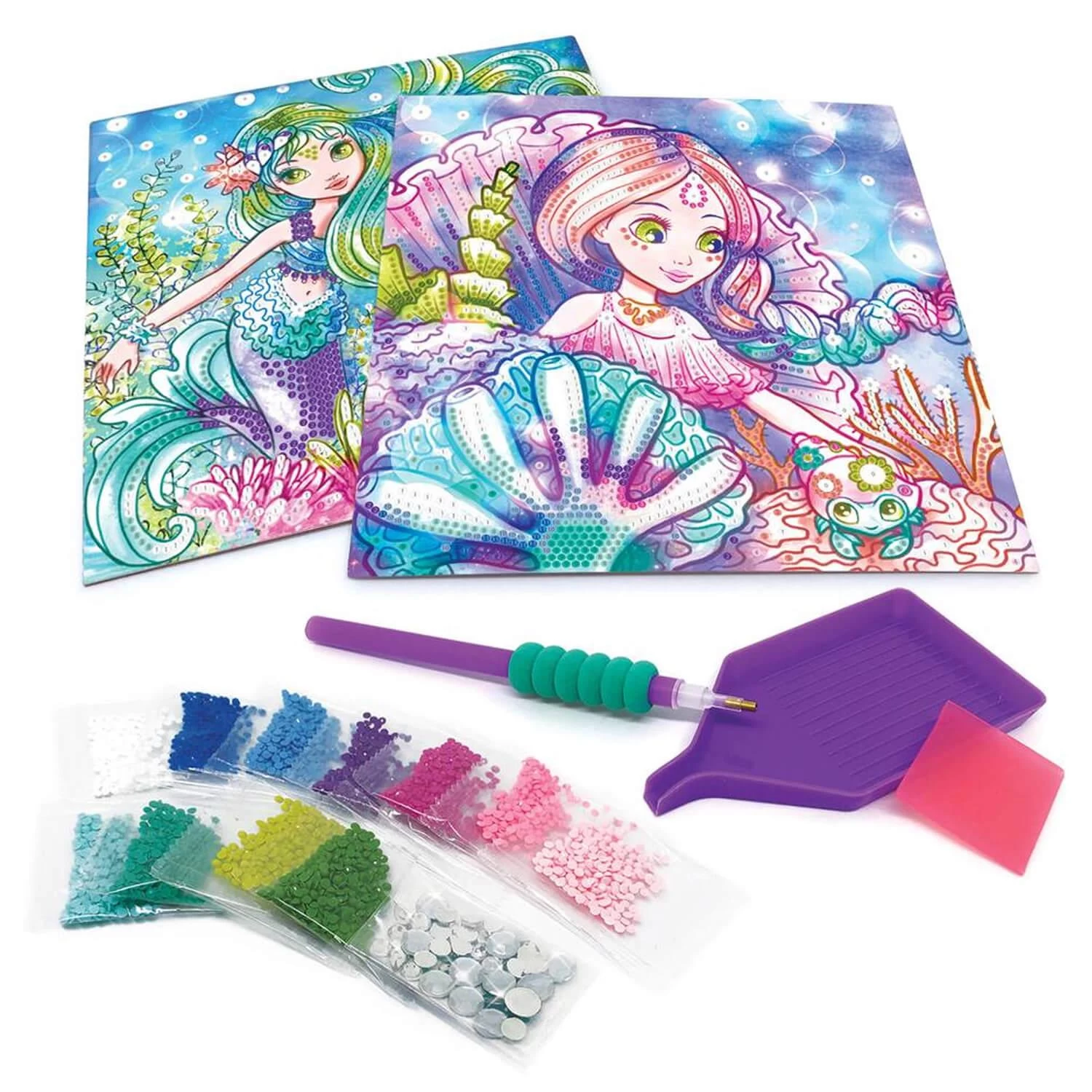 Avec ce kit, crée deux chefs-d’oeuvre en strass éblouissants ! A la manière de la peinture au numéro, colle des micro-strass avec l’applicateur spécial sur des modèles pré-encollés en suivant les nombres associés à chaque couleur. Le résultat final est étonnant !