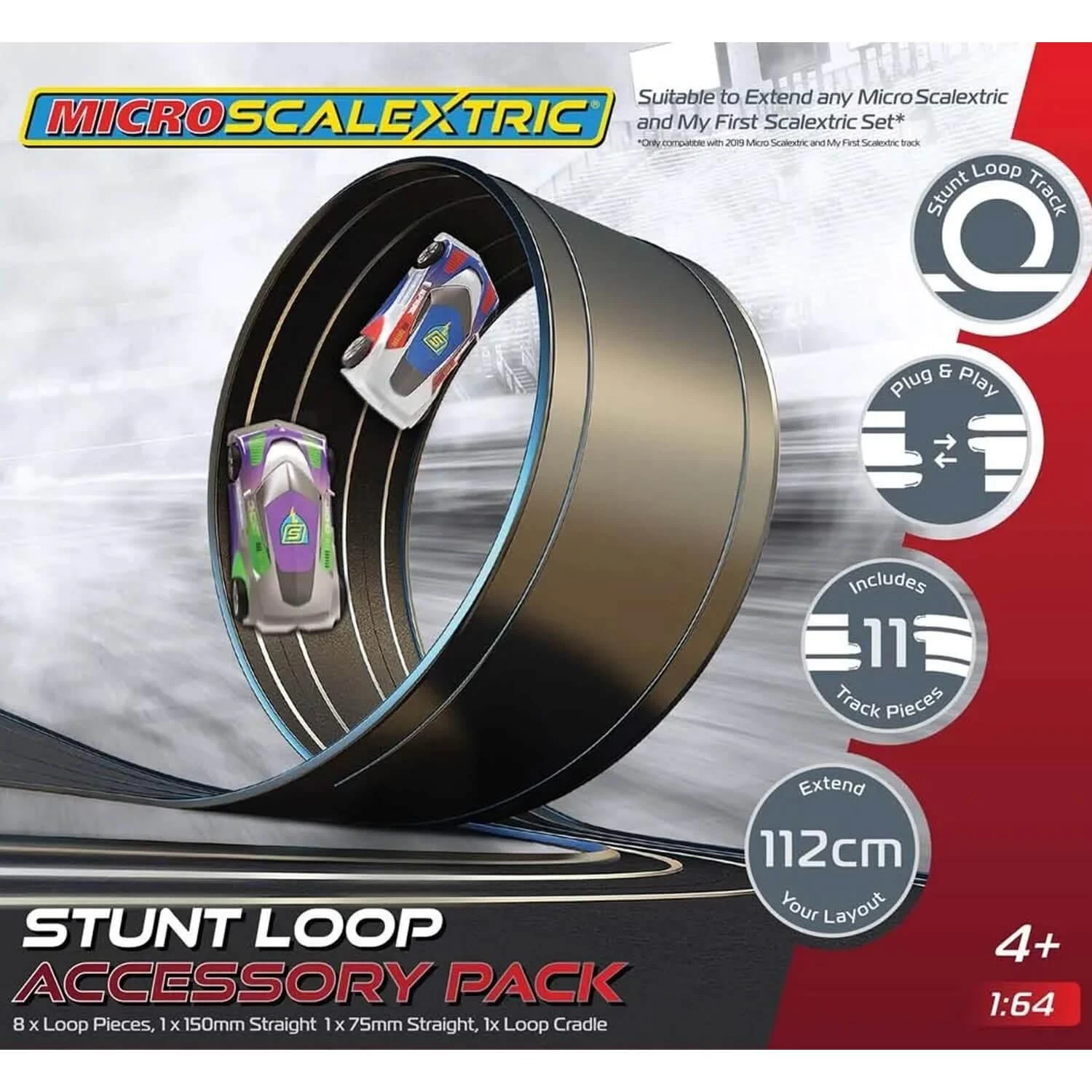 Ce pack d’extension Micro Scalextric est uniquement compatible avec les ensembles Micro Scalextric et My First Scalextric à partir de 2019.