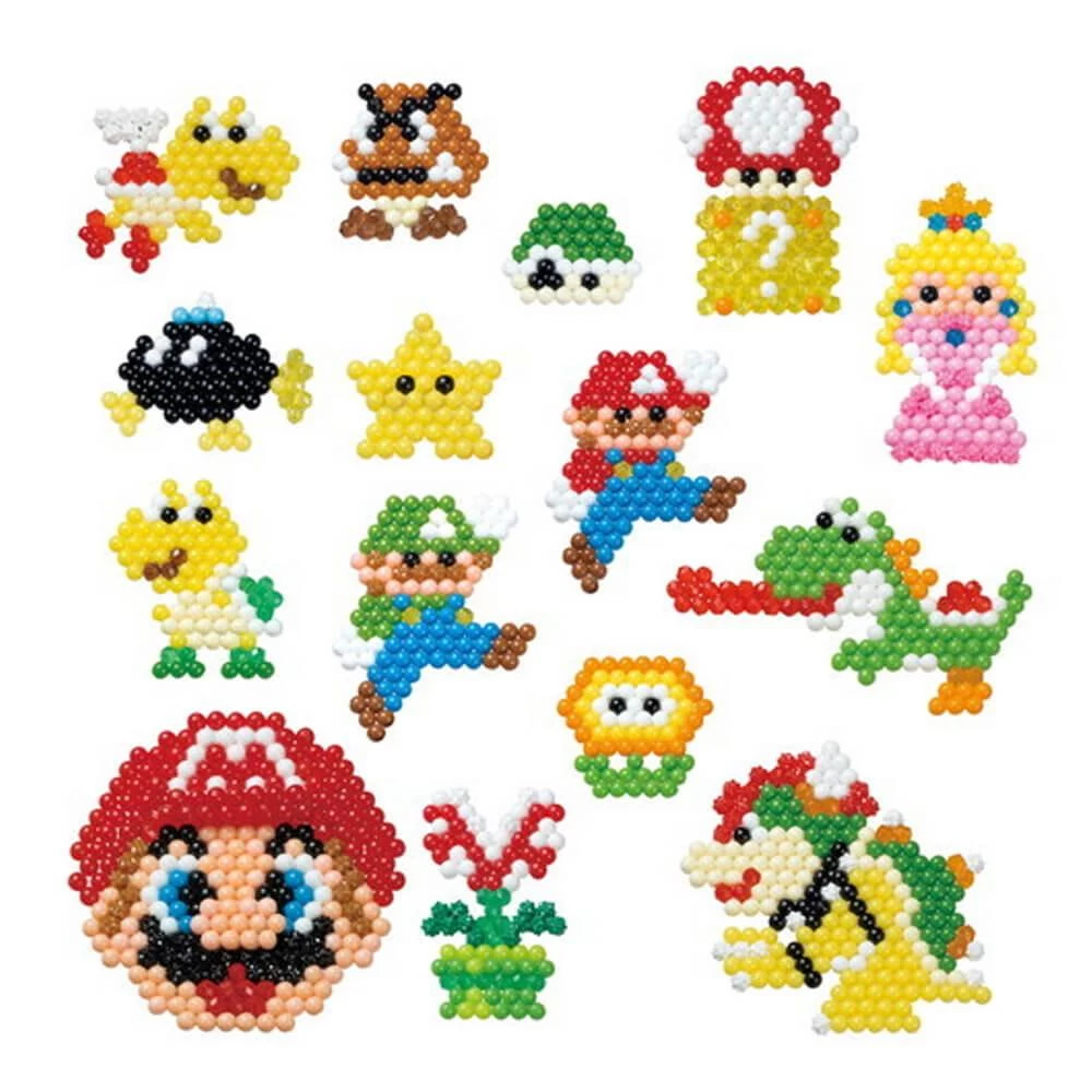 Découvrez ce super coffret de perles Aquabeads : la box Super Mario pour revivre les aventures du plus célèbre personnage de Nintendo ! A l’aide des perles, créez vos héros préférés (Super Mario, Luigi, Peach,..) mais aussi les vilains (Bowser, Boo …) et mettez les en scène grâce à la base de création !