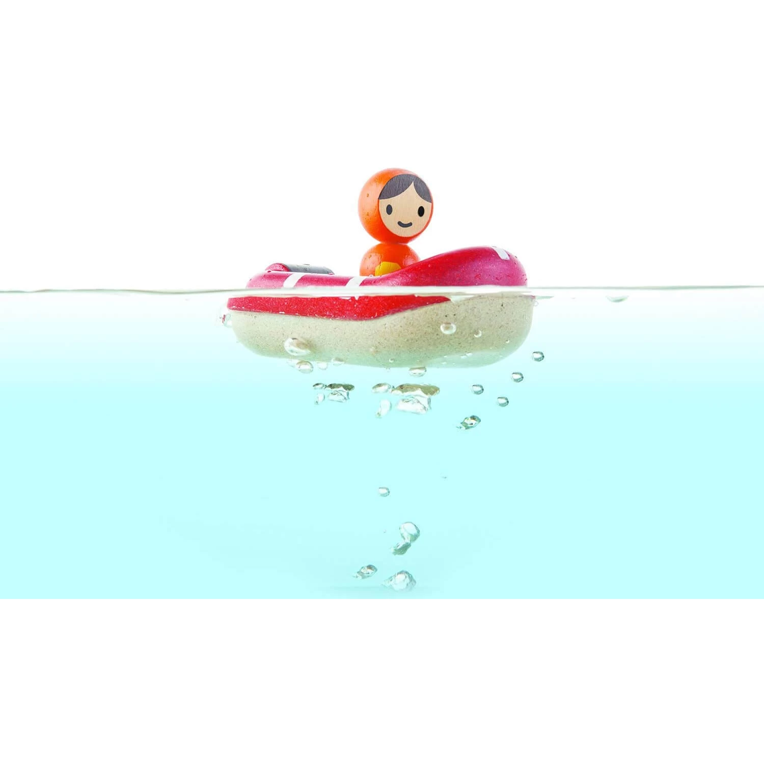 Ce petit hors bord rouge de la marque Plan Toys, bien qu’il soit en bois, flotte réellement sur l’eau ce qui rend le jeu encore plus réaliste. Il accompagnera votre enfant pendant qu’il prend le bain et développera son imagination. Il est fourni avec une figurine amovible.