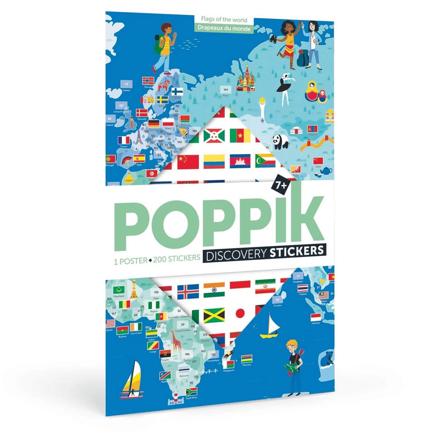 Découvrez une activité ludique passionnante sur les drapeaux du monde avec ce poster pédagogique et des stickers de la marque Poppik.