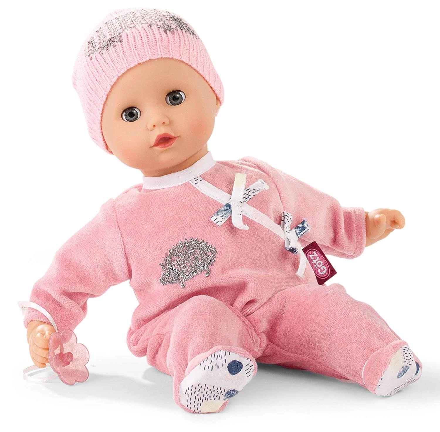 Cet adorable poupon a besoin de toute l’attention que vous pourrez lui porter. Apprenez comme papa et maman à la cajoler, à le nourrir et à l’habiller. Cette poupée est déjà vêtue d’une barboteuse en velours rose avec un joli petit hérisson argenté à l’avant. S’il fait un peu froid dehors, vous pourrez lui mettre son bonnet, il ne faut surtout pas qu’il attrape froid. N’oubliez pas de prendre la tétine, votre poupon en a besoin pour se sentir rassuré !