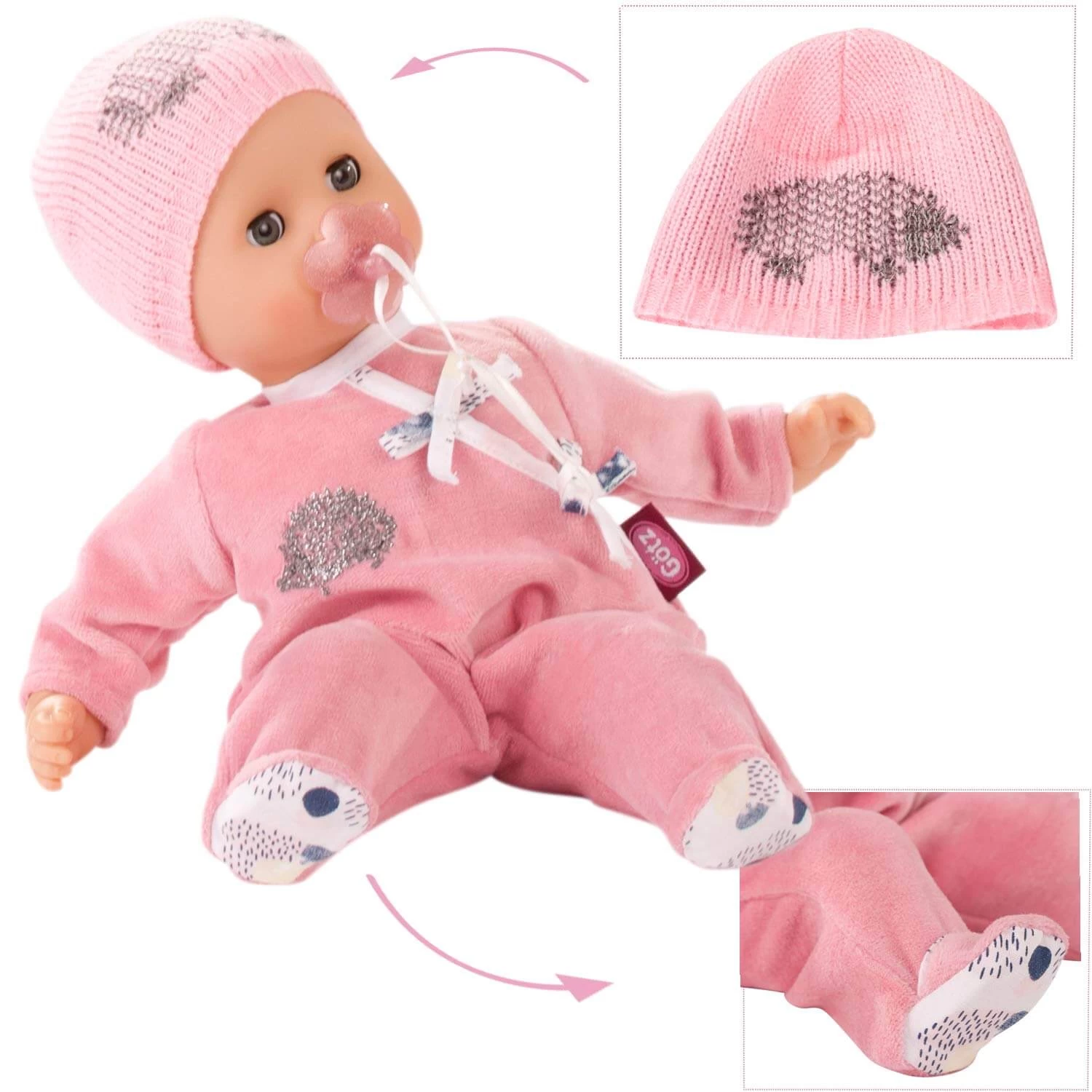 Ce poupon fait partie de la collection Muffin de la célèbre marque allemande Götz, des poupons aux corps en tissu rembourré de coton et de billes, faciles à manipuler par les enfants à partir de 18 mois.