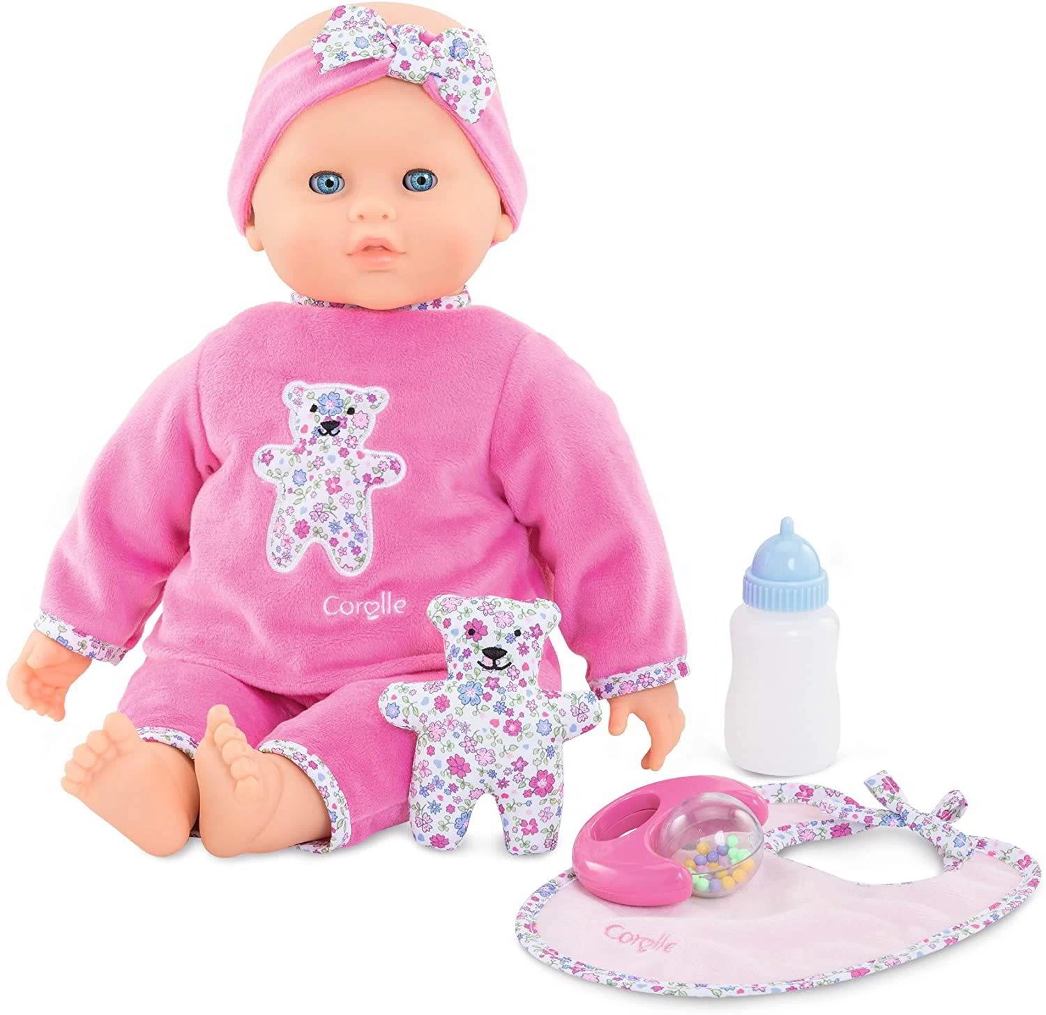 “Lucille interactive est un grand poupon Corolle au corps souple pour jouer et faire comme les grands. Grâce à ses capteurs sensoriels et à ses 4 accessoires, Lucille interactive réagit et répond aux actions de l’enfant comme un vrai bébé.