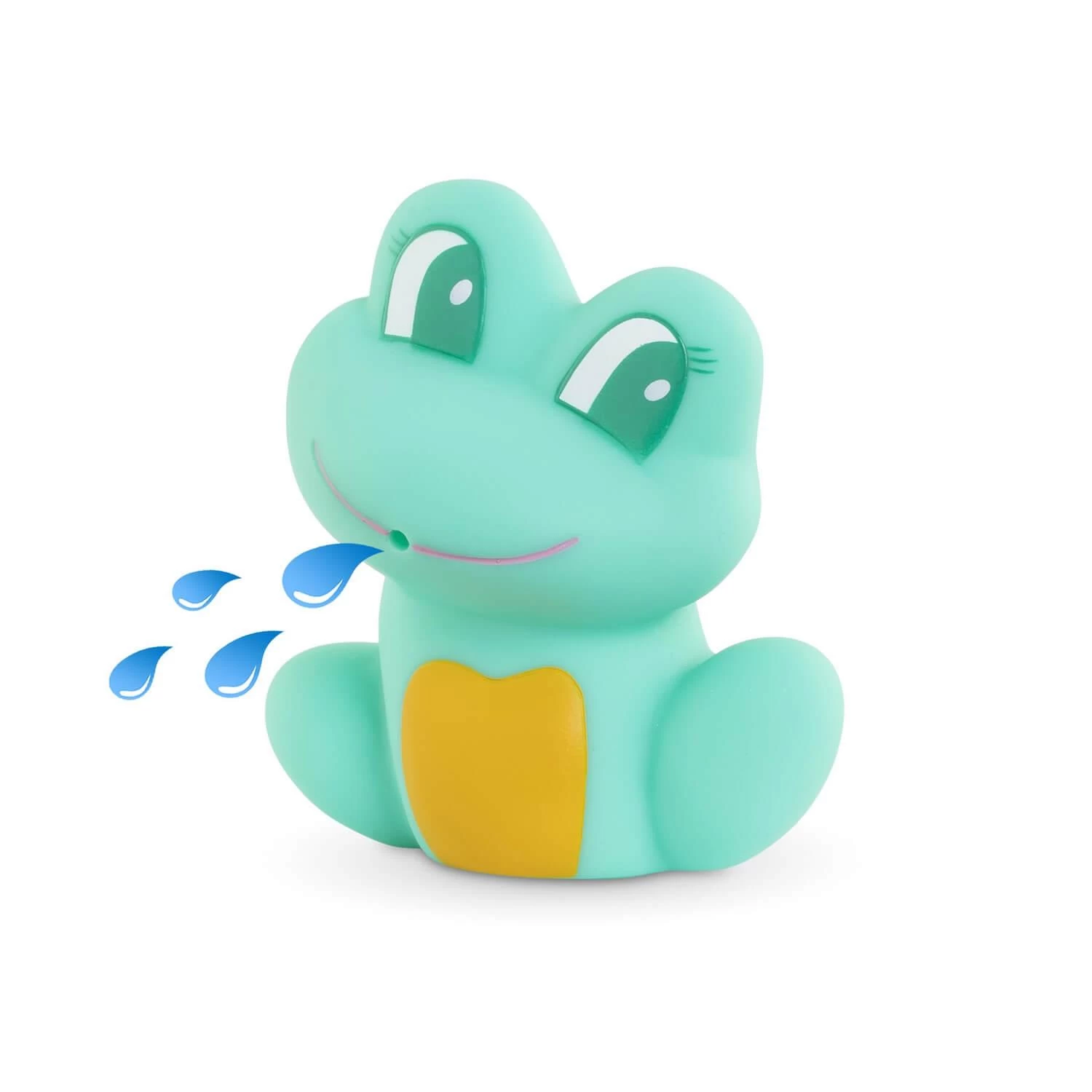 Il est habillé d’une blouse et d’un short et coiffé d’un bandeau assorti. Il est livré avec une grenouille de bain qui crache de l’eau quand on appuie dessus après l’avoir immergée. L’attache cousue dans son dos permet de le suspendre pour le faire sécher après le bain et les jeux d’eau.