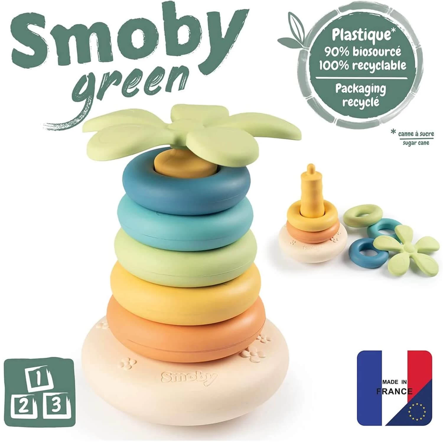 Composée à 90% de plastique d’origine végétale (biosourcé), à base de canne à sucre, la pyramide Little Smoby Green favorisera l’apprentissage des couleurs et la coordination des gestes.