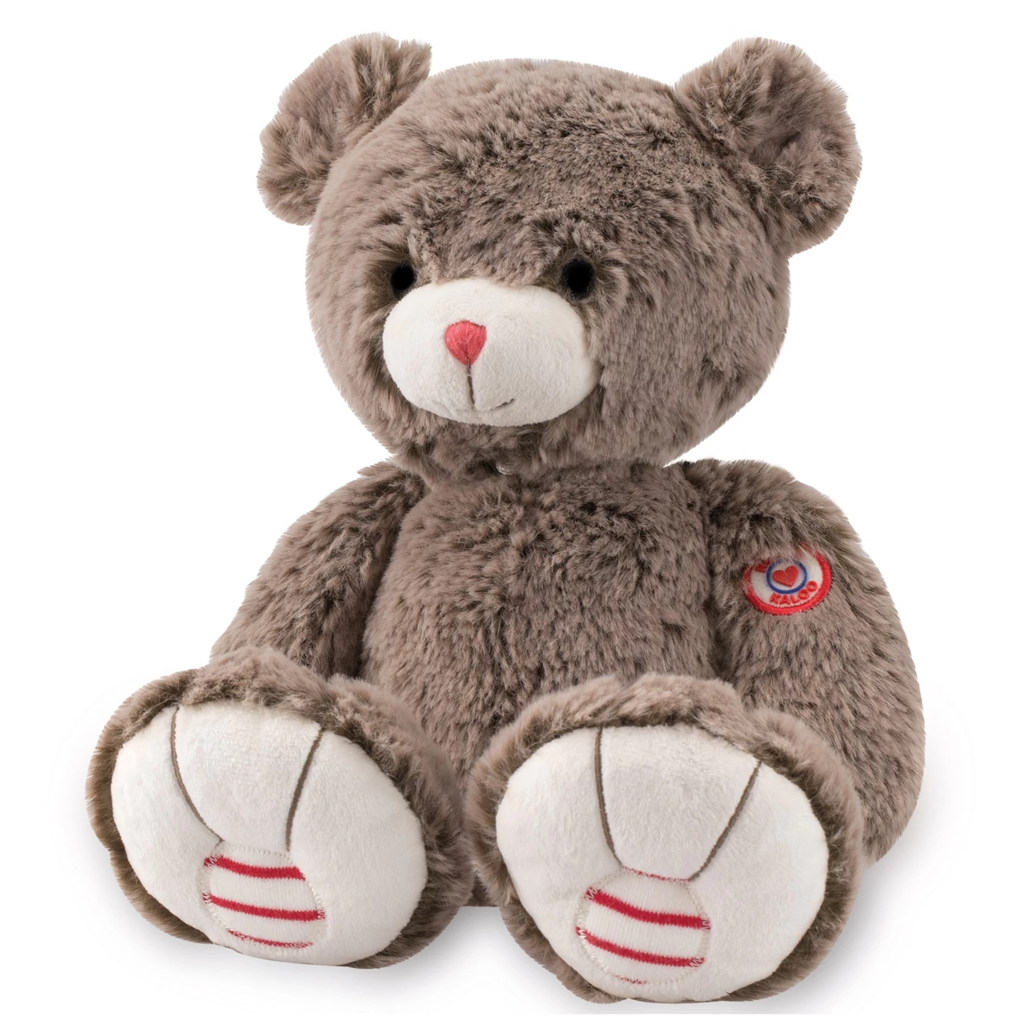 Cet ours est de taille moyenne. Son pelage est de couleur cacao, ses yeux sont noirs et son museau est rouge. Cette peluche a de petites oreilles rondes, deux pattes à l’avant dont l’une a le symbole de la collection, et deux grosses pattes arrières. Sous chacune de ces pattes arrières, il y a un rond rayé rouge et blanc.