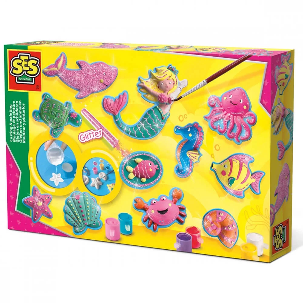 Avec ce kit signé SES Créative, c’est facile de créer de jolies figurines sur le thème de l’océan ( sirène, dauphin, crabe, coquillage, tortue …). Versez le plâtre dans le moule, puis laissez-le reposer. Prenez la peinture fournie et peignez les figurines comme vous le souhaitez. C’est amusant à faire et le résultat est impressionnant !