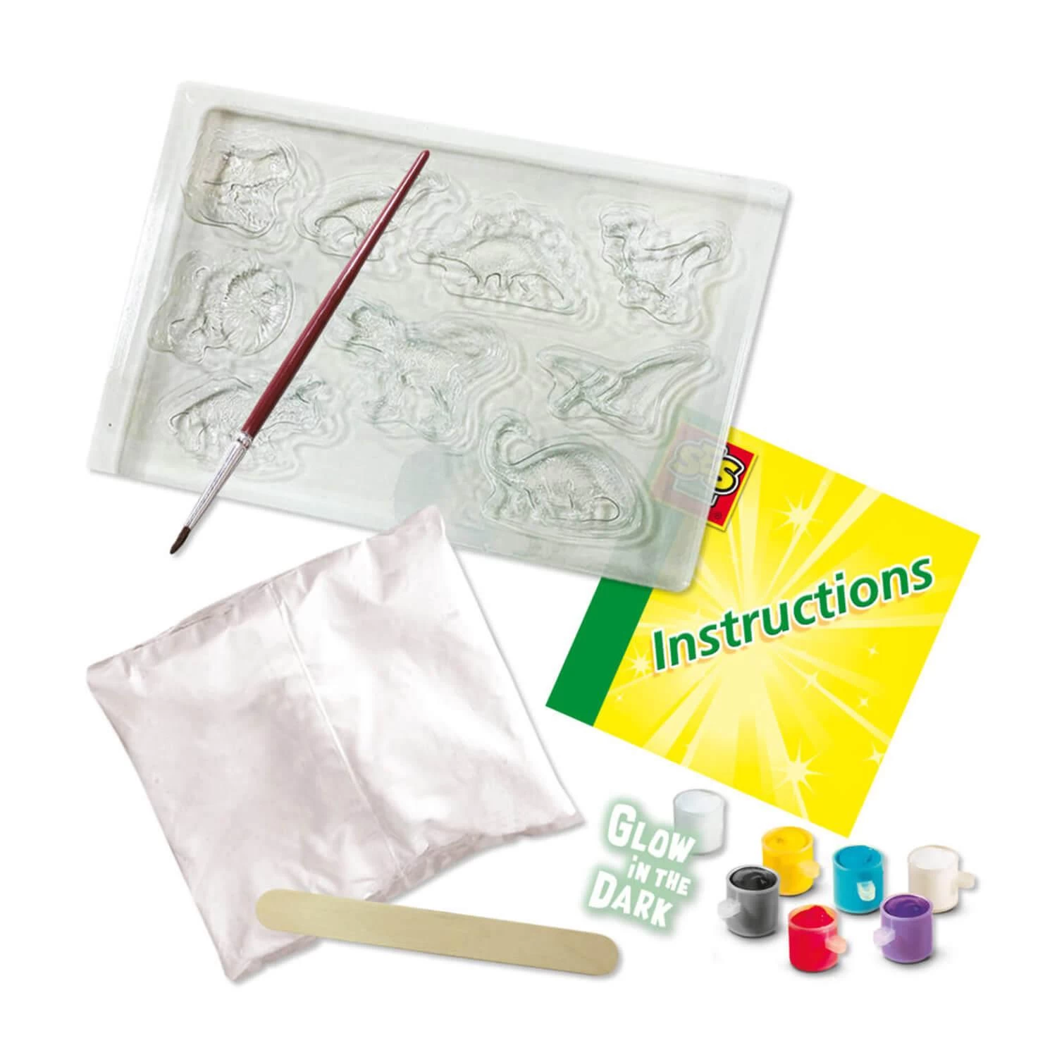 Les kits de moulage et de peinture de SES Creative garantissent une journée de travaux manuels amusants et créatifs. Ce kit permet de créer des dinosaures colorés qui brillent dans le noir.