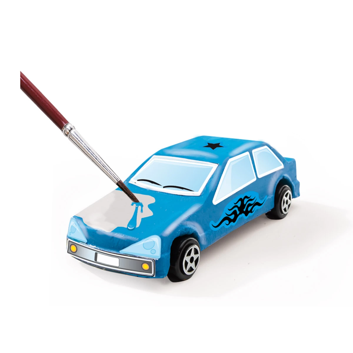 Versez le plùtre dans le moule, ajoutez les roues, puis laissez sécher. Vous pouvez ensuite peindre les voitures avec vos couleurs préférées. Ajoutez des autocollants pour parfaire votre création.