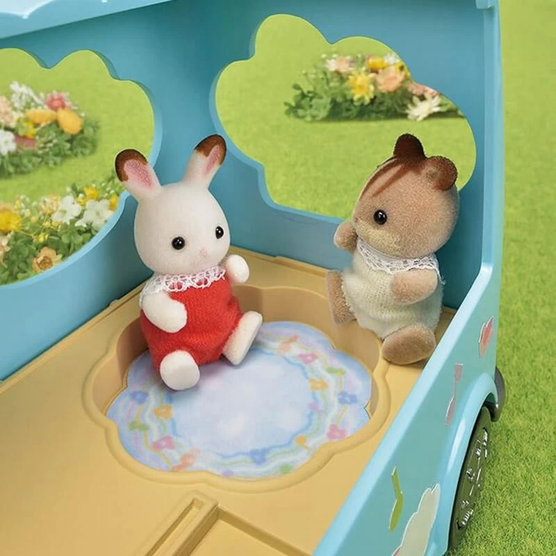 Ce bus pouvant accueillir jusqu’à 12 bébés des Sylvanian Families offre un super voyage aux enfants, le trajet est amusant car de nombreuses activités se cachent dans le bus.