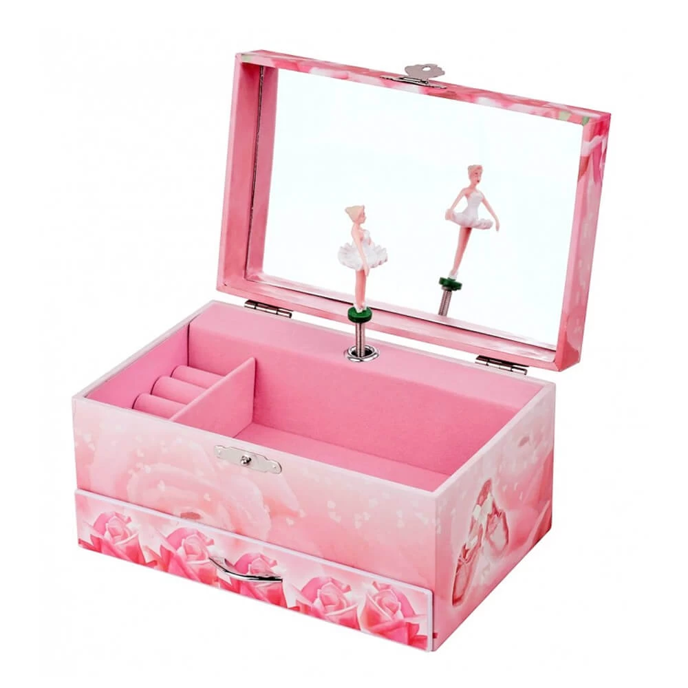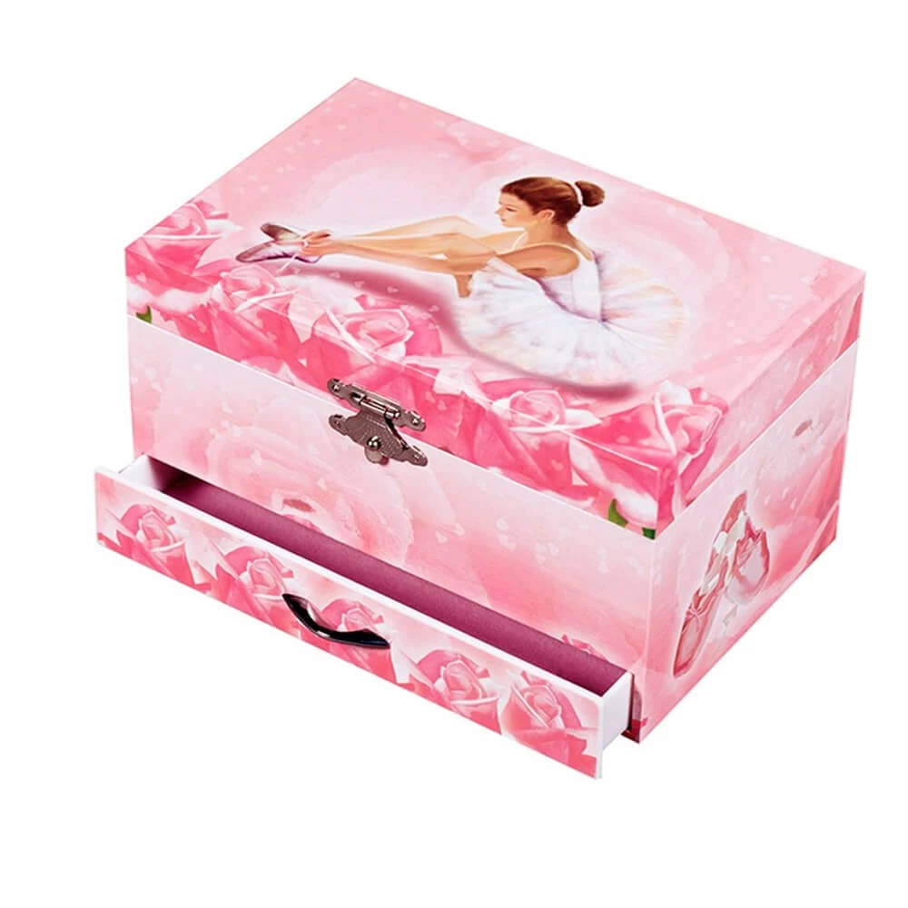 Cette boîte à bijoux est en plus musicale. Au déclenchement de la musique, lorsque la boîte est ouverte, une figurine de danseuse se met en mouvement au son de la douce mélodie.