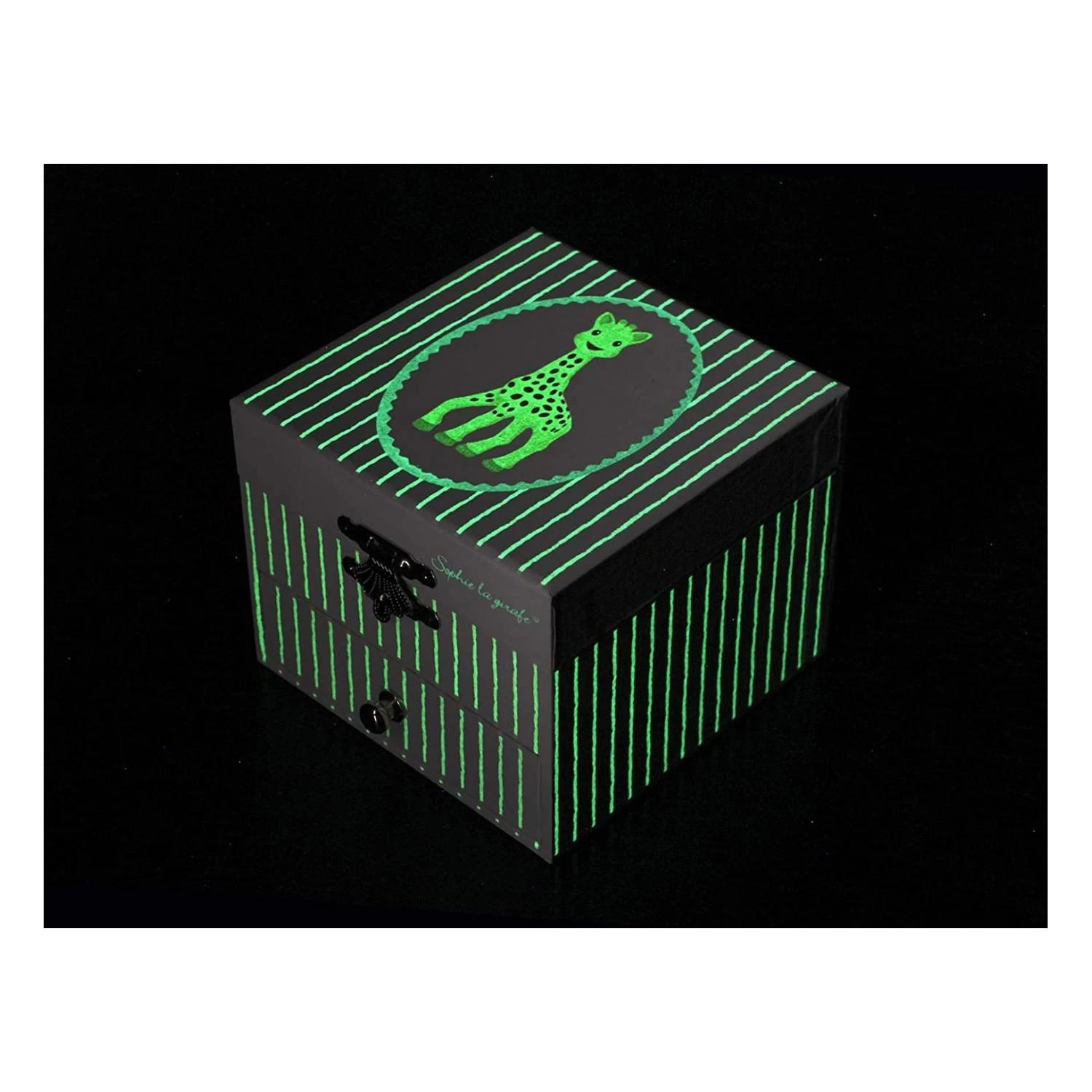 UNE BOĂTE MUSICALE POUR RANGER SES BIJOUX : Cette boĂźte Ă musique en forme de cube et disposant d’un tiroir Ă©merveillera l’enfant qui y rangera ses trĂ©sors. Actionnez la manivelle et la figurine Sophie la Girafe sâanime comme par magie au son de la musique !