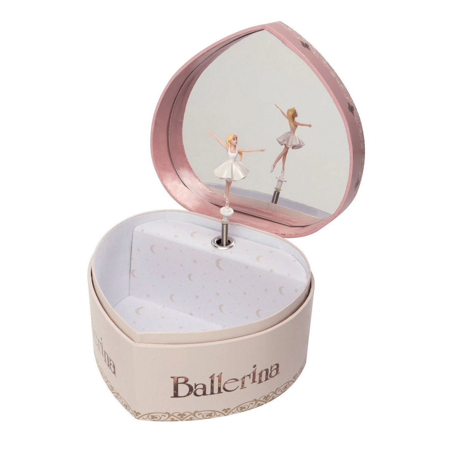 Cette boîte à musicale réalisée en forme de coeur est de coloris rose pâle et son couvercle est illustré à l’effigie de Félicie l’héroïne du film d’animation Ballerina.