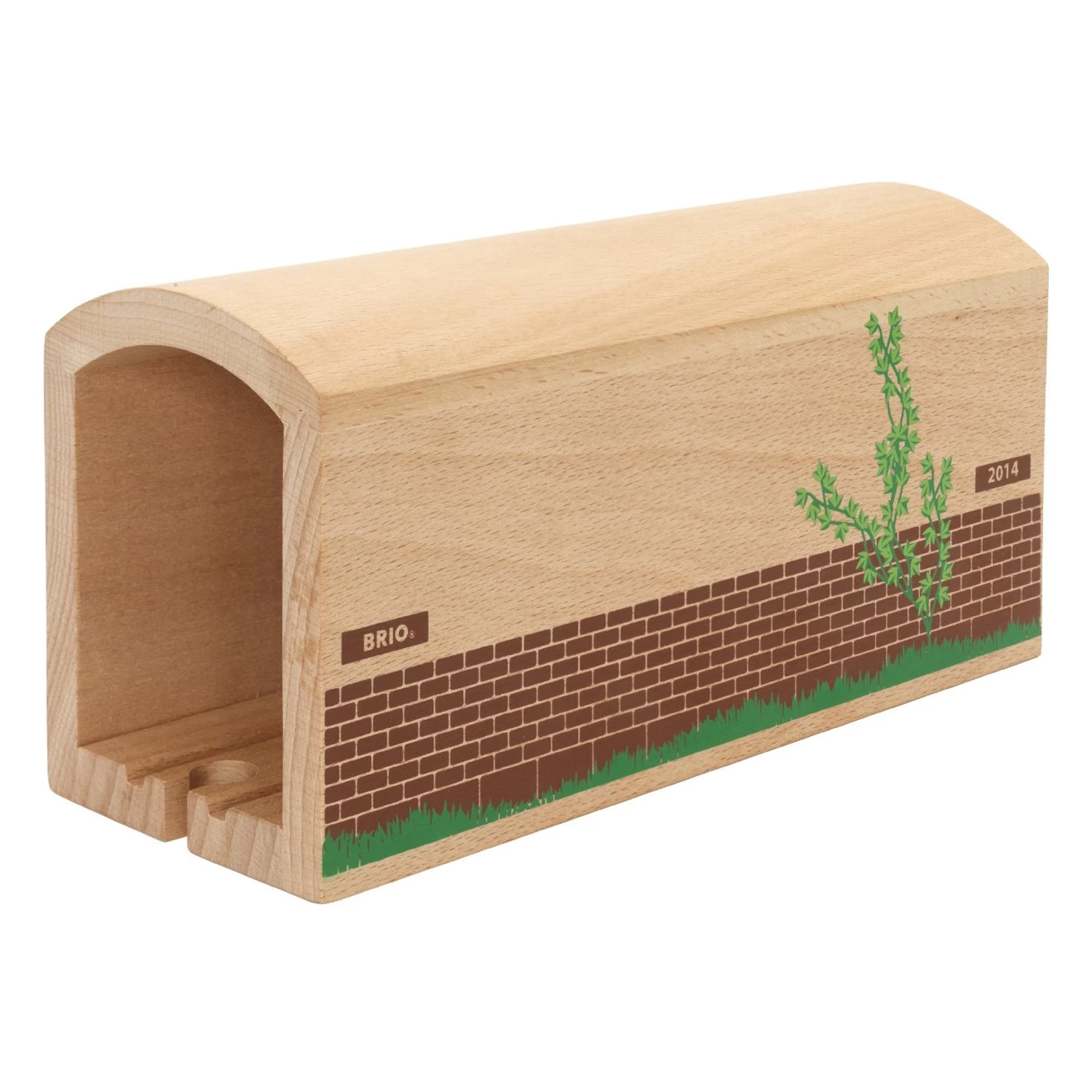 Un tunnel robuste tout en bois au travers duquel les trains peuvent passer.