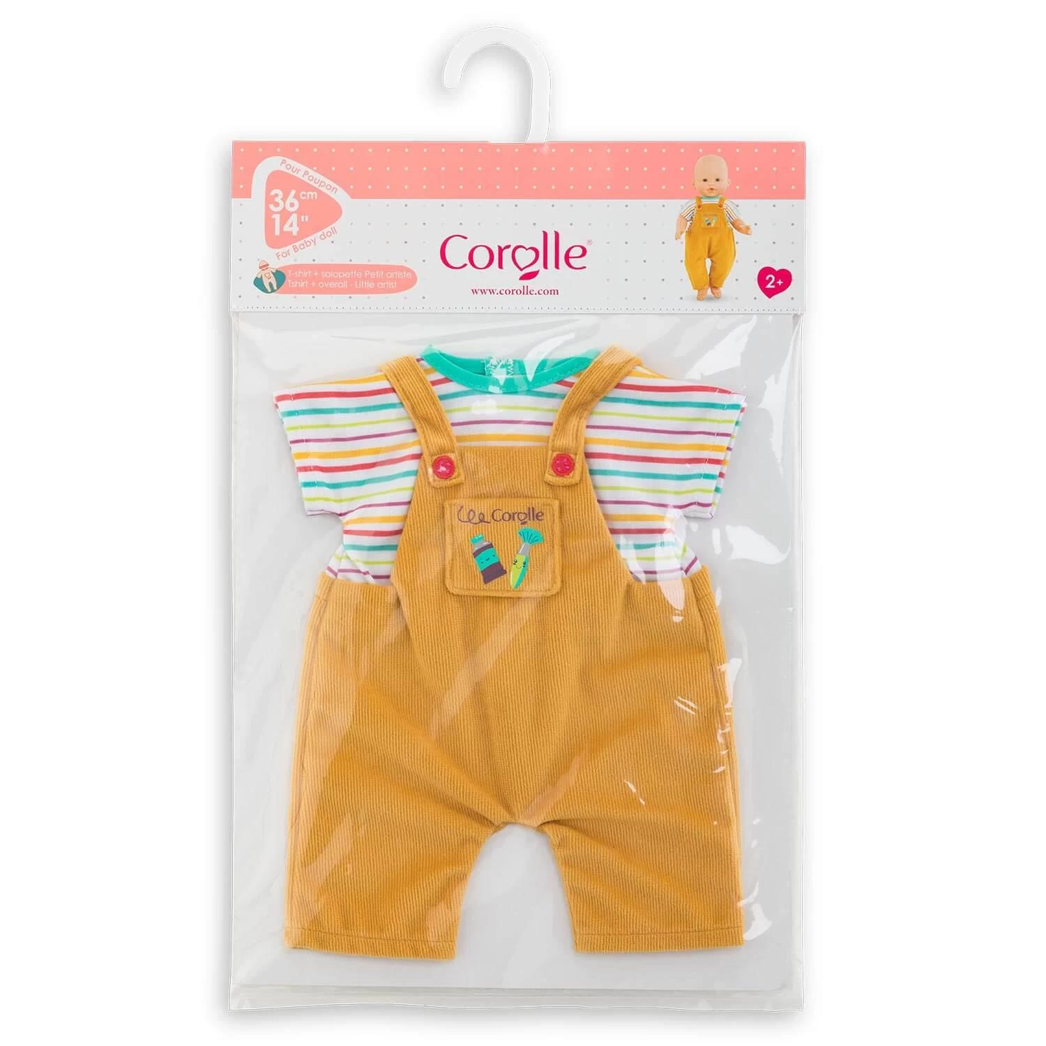 Lumineux et coloré, l’ensemble T-shirt + Salopette Petit Artiste réveillera le talent des petits créatifs pour les poupons de 36 cm mon grand poupon Corolle.