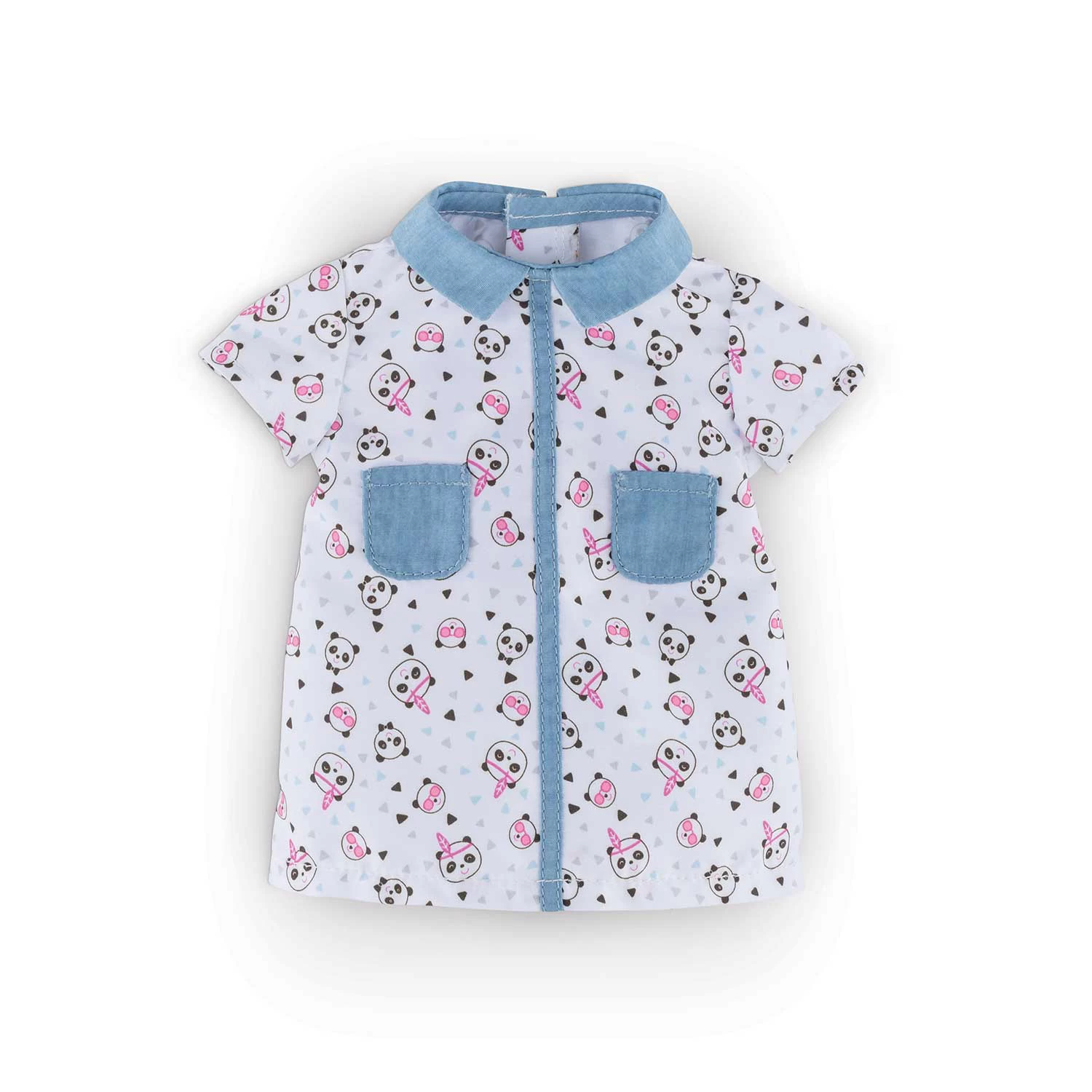 Cette robe à manches courtes convient idéalement à toutes les poupées mesurant 36 cm de haut, comme la célèbre poupée ma Corolle. Constellée de motifs originaux en forme de triangles et de tête de panda, elle descend jusqu’aux genoux et possède deux bandes auto-agrippantes dans le dos pour l’enfiler facilement par la tête.