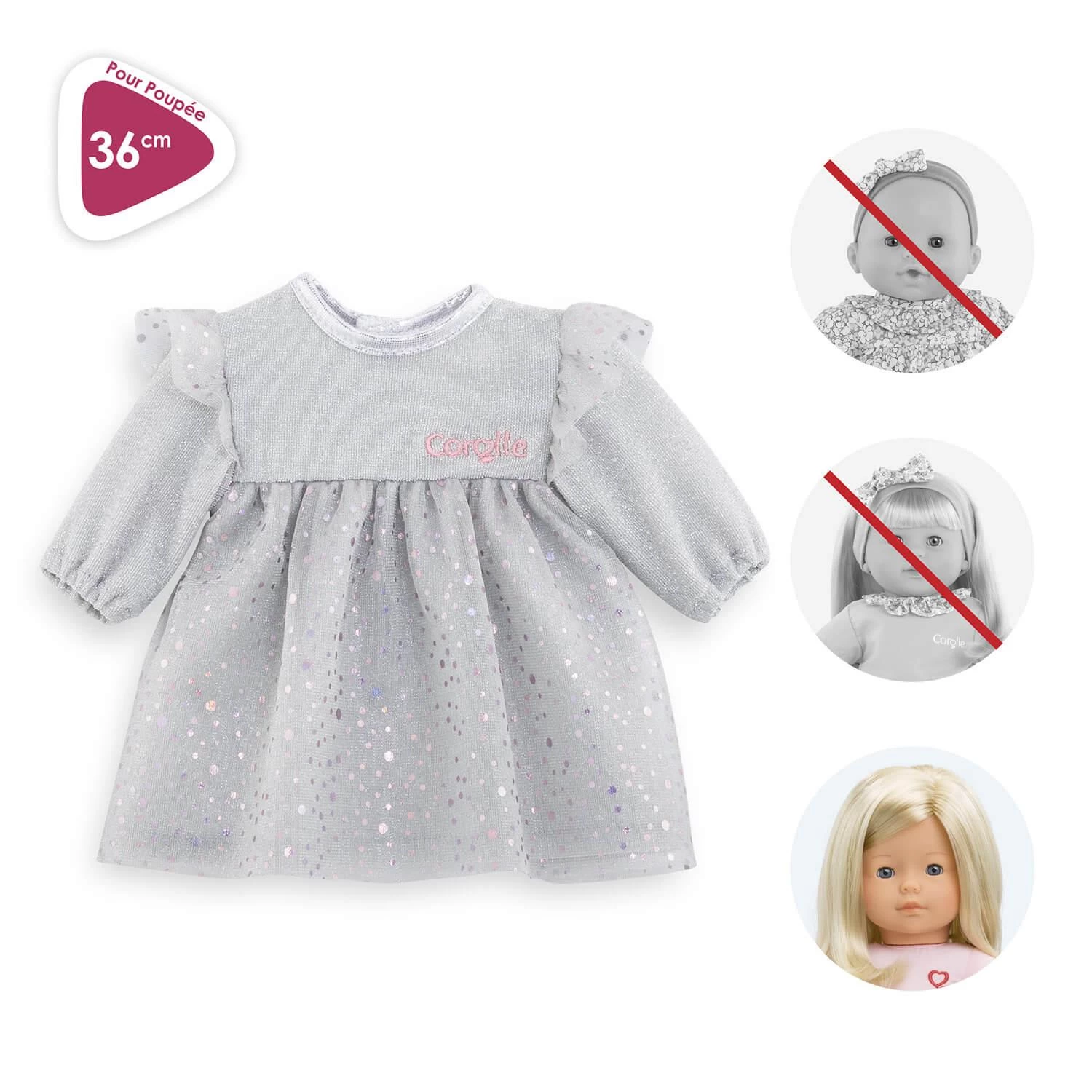La soirée va bientôt commencer et pour se faire remarquer, la robe Soir de Fête pour poupée ma Corolle est le choix parfait.