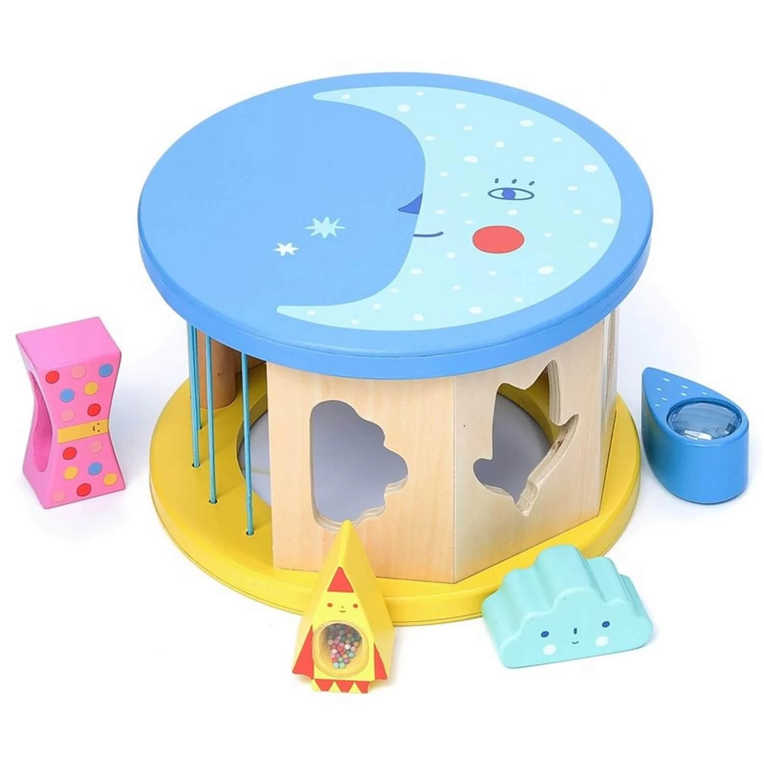 Embarquez dans l’univers Kawai chic de Suzy et craquez pour cette boite à formes toute ronde et pleine de douceur qui favorisera l’éveil des petits. Un côté jour, un côté nuit, un soleil tambour ! Eh ! Oooooh ! Surprise… Les formes à encastrer font des petits bruits rigolos. La plus craquante est certainement la goutelette, dotée d’un kaleidoscope trop chouette ! Conçue par notre équipe de mamans créatrices et de papas joueurs, cette boite à forme favorisera l’apprentissage de la motricité fine et de l’observation.