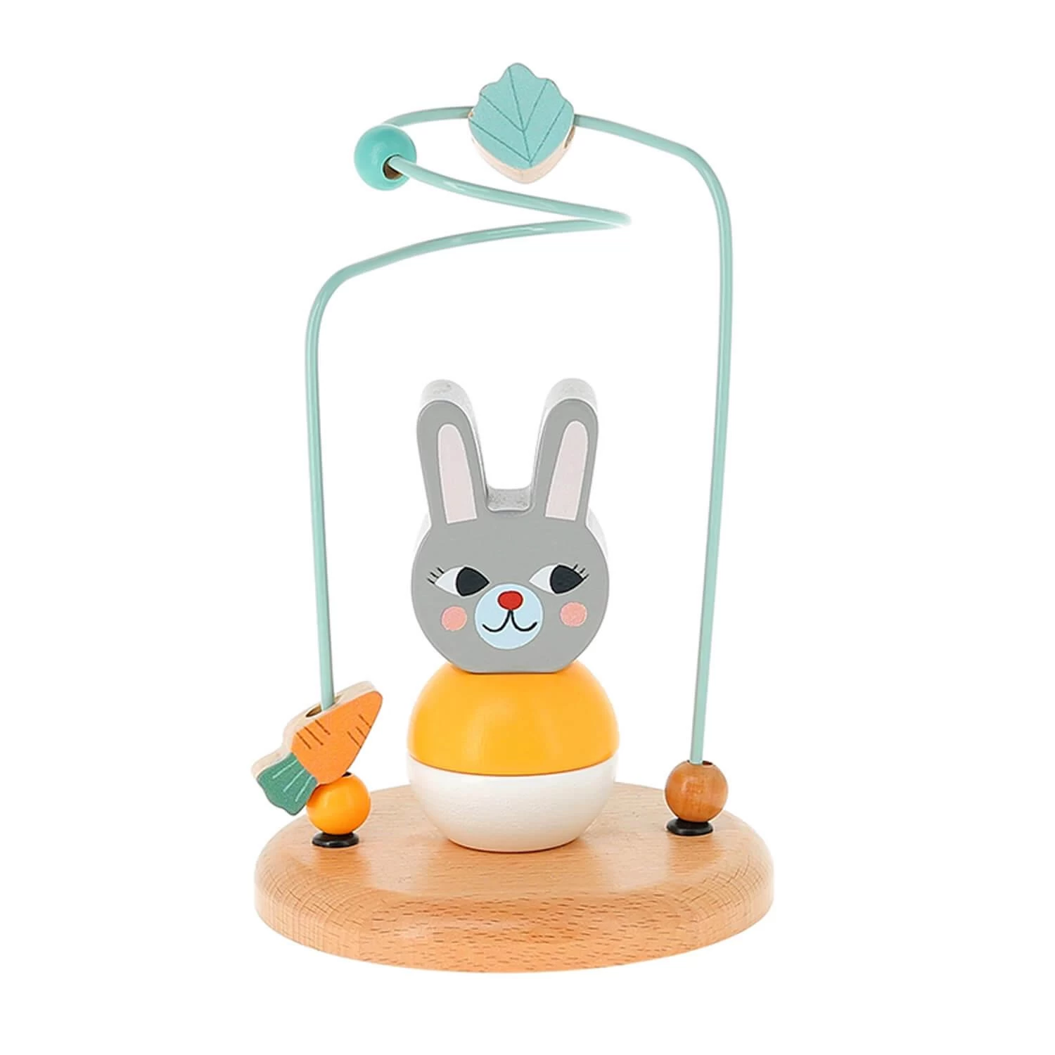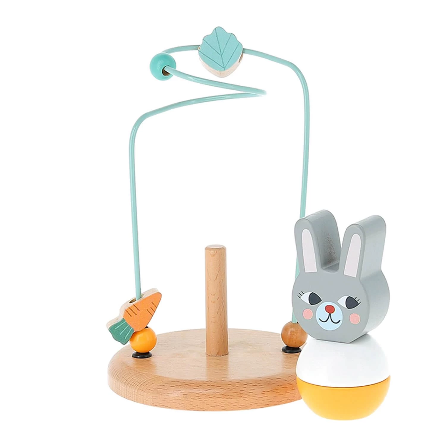 Deux-en-un, ce jouet à fil lapin est aussi est un empilable. L’enfant peut ainsi s’amuser à empiler l’adorable lapin en bois sur la base et aussi à faire passer la carotte et la feuille, d’un côté ou de l’autre, le long du fil.