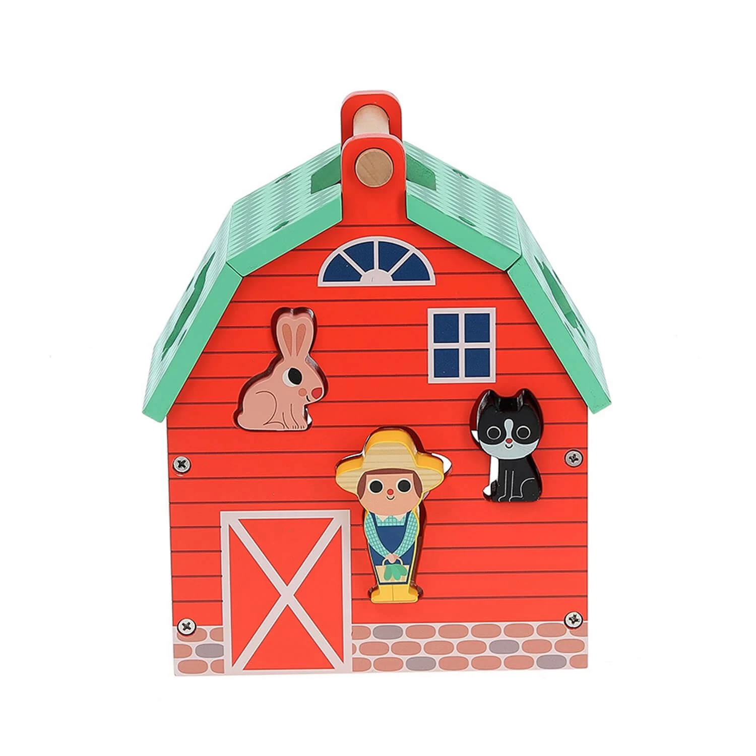 Ils vont s’amuser avec ce jeu d’éveil peuplé d’animaux, qui trouvera également sa place comme déco dans leur chambre. Ils apprendront à leur rythme à manipuler les animaux pour les encastrer dans les espaces correspondants. Une fois encastrées, les pièces sont facilement récupérables grâce à la porte basculante de la maison et à la pente inclinée à l’intérieur.