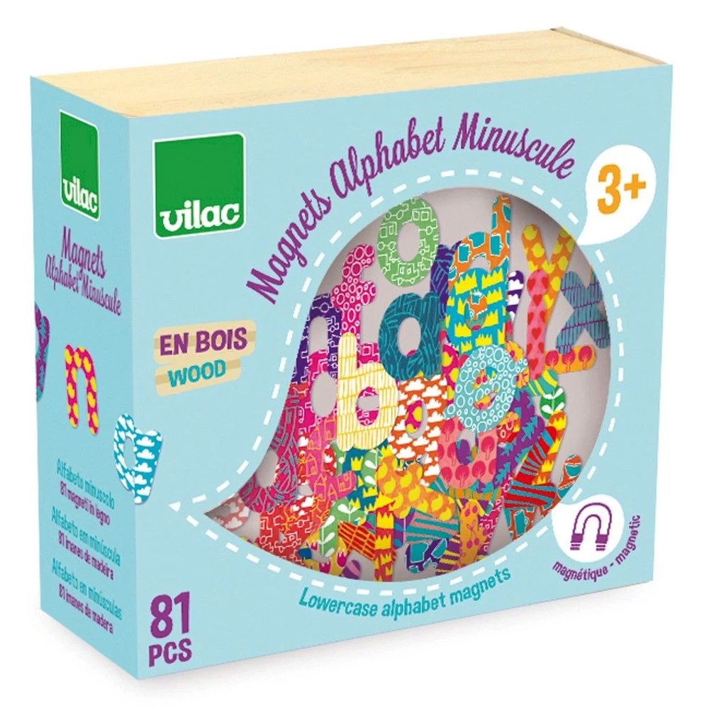 Note : notre site vous propose également un coffret Alphabet Majuscule (référence Vilac-6703), ainsi qu’un coffret Chiffres (référence Vilac-6704) comprenant tout deux 56 pièces.