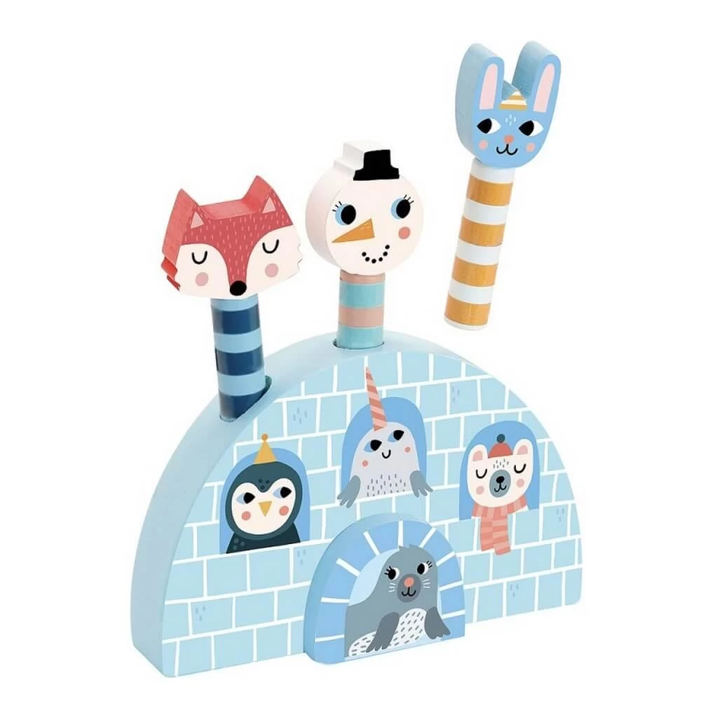 Michelle Carlsund a collaboré avec la célèbre marque de jouets Vilac pour créer ce joli Pop-up Iceland. Le jeu se compose d’un igloo et de trois personnages bondissants : un renard malin, un lapin coquin et un bonhomme de neige rigolo. Appuies sur leurs têtes, relâches et attrapes les vites ! Un jouet en bois pour développer la coordination œil-main et les réflexes idéal comme premier cadeau d’anniversaire ou pour le premier noël.