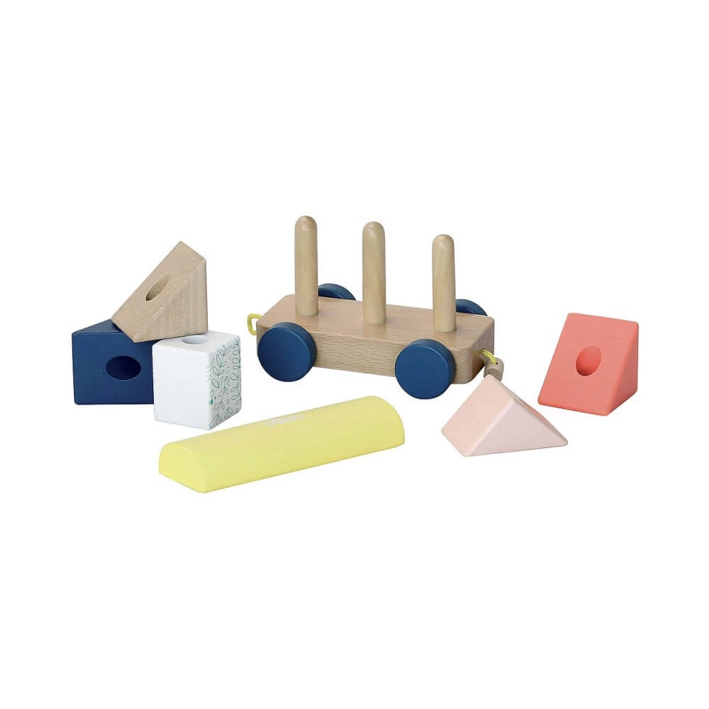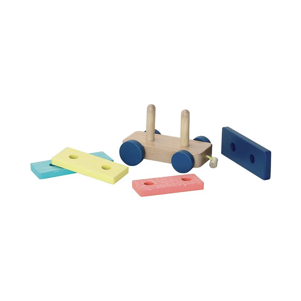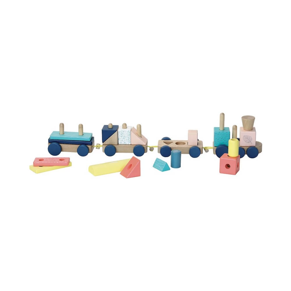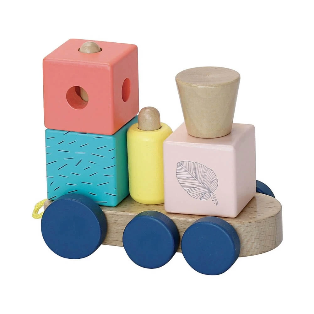 Découvrez ce super train en bois Vilac à construire aux couleurs naturelles et acidulées pour votre tout-petit.
