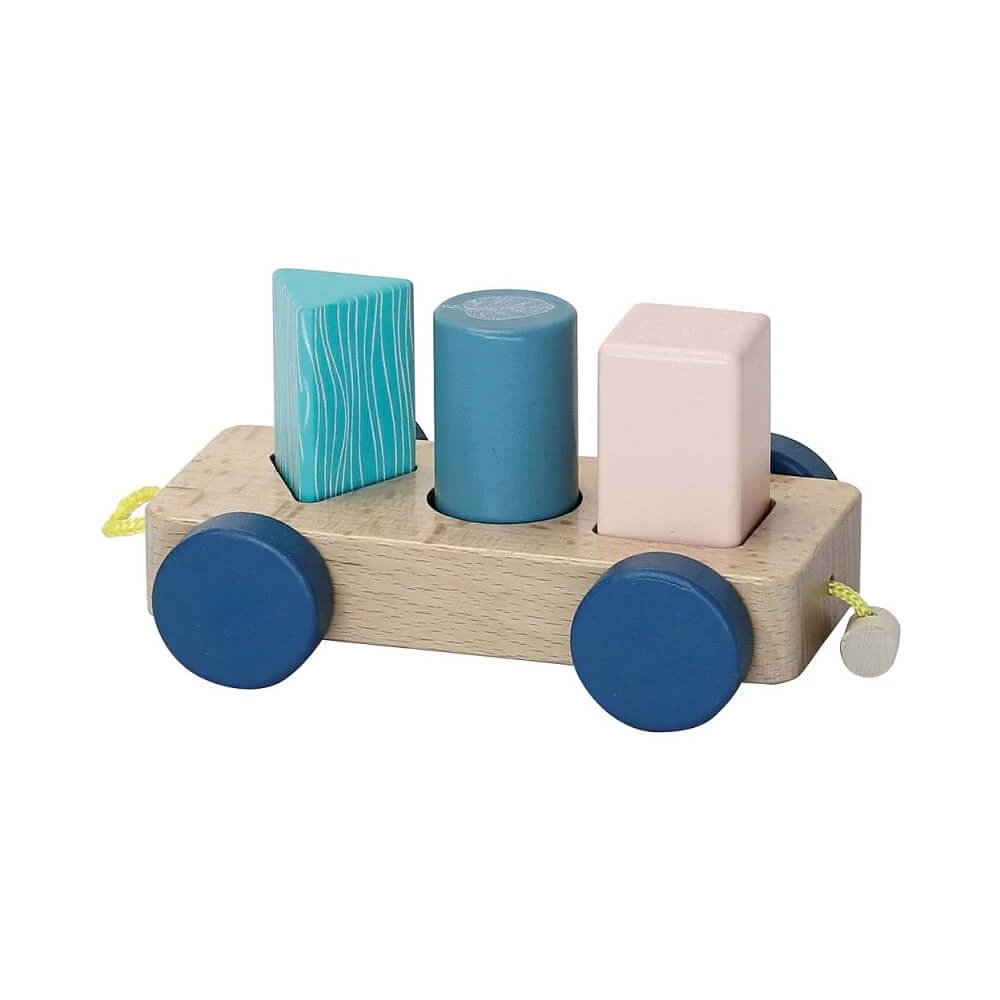 Ce train de la gamme Sous la Canopée de Vilac offre de jolies couleurs pour stimuler l’éveil de bébé. Ce train se compose de 4 wagons à assembler les uns aux autres et de pièces en bois de différentes formes à empiler sur ces wagons.