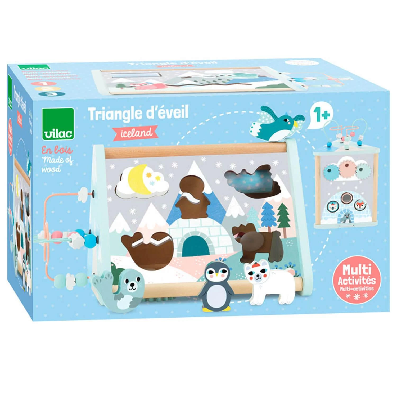 Avec ses nombreuses activités variées, ce triangle d’éveil en bois de la marque Vilac sera un incontournable dans l’univers des petits. Illustré avec douceur par Michelle Carlslund,il plonge les petits dans le monde de la banquise.